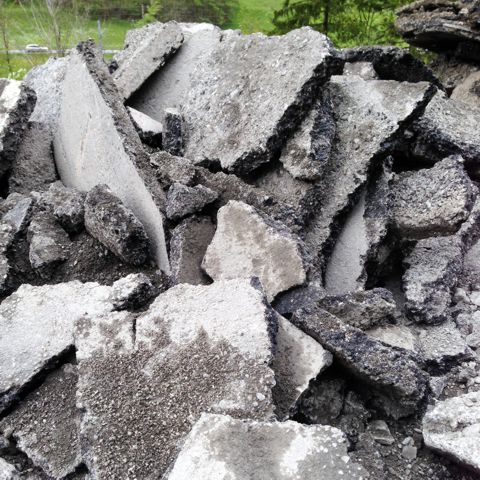 Die verschiedenen verwertbaren Materialien, wie Betonabbruch, Steine und Belag, werden von uns aussortiert, gebrochen und zur Wiederverwendung im Strassen- und Tiefbau verkauft.